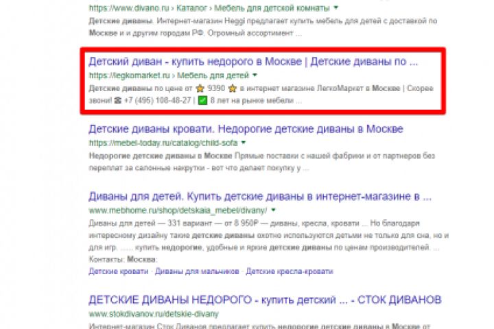 Москва - Топ 3 Google - Детские диваны недорого
