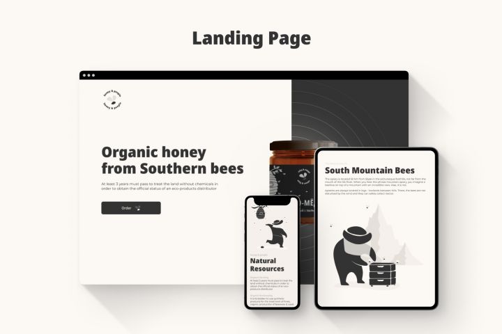 Посадочная страница небольшой пасеки, которая специализируется на производстве уникальных сортов мёда.