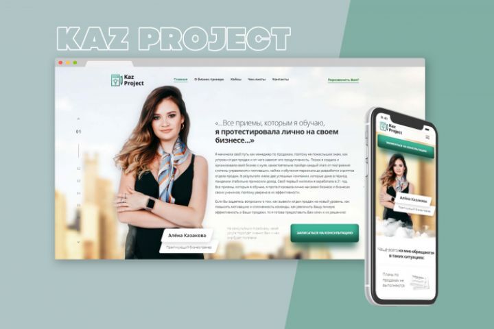 Разработка лендинга для продаж услуг бизнес-тренера Алены Казаковой. Размещение на сайте бесплатных гайдов для скачивания и платных для покупки. Зеленый цвет обязательно. Современный стильный дизайн. Размещение видеоотзывов. Расписали техническое задание и приступили к дизайну непосредственно. Составили стратегию по работе с будущими клиентами на пять экранов лендинга, написали текст, разработали текст для клиентов, которые не могу определится с тем, какую услугу нужно им. Сделали современный дизайн и сверстали его. Сайт разместили на хостинге заказчика, подключили SSL и прописали начальное SEO.
