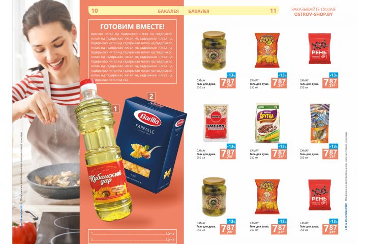 Вариант разворота акционного буклета для сети магазинов "Остров чистоты и вкуса"