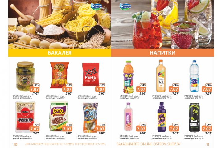 Вариант разворота акционного буклета для сети магазинов "Остров чистоты и вкуса"