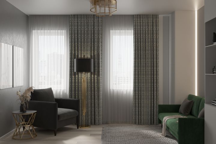 Комната в современном стиле с элементами ар-деко. Площадь помещения 12 м2