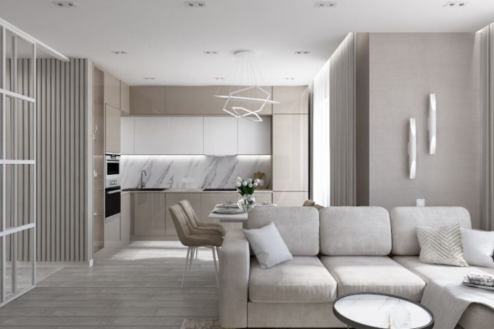 Дизайн интерьера кухни-гостиной 13,6 квм