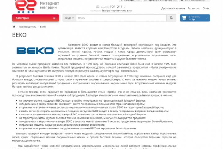 Статья для компании о компании, занимающейся продажей техники "ВЕКО"