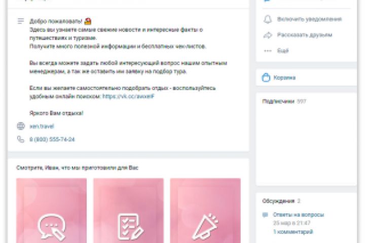 Разработка обложки и виджетов для сообщества ВК турфирмы Xen Travel