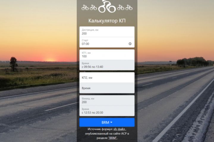 Часть проекта веломарафонского клуба brevet.omskvelo.ru - онлайн-калькулятор времени открытия-закрытия контрольных пунктов (КП) бреветов BRM и LRM. Автоматически расчитывает лимиты исходя из выбранной методики, генерирует URL с расчётом, динамически расширяет форму по мере ввода данных.