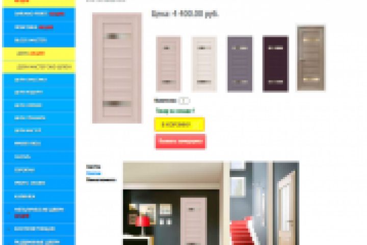 Для интрнет-магазина по продаже дверей и комплектующих индивидулально был создан блок, в котором любую дверь можно подставить под интерьер, таким образом посетитель сайта будет иметь представление о том, как та или иная дверь будет смотреться в интерьере спальни, ванной комнаты или на кухне. Все интерьеры вставляются индивидульно для каждого товара. Это сделано специально для того, чтобы администратор сайта мог логически выбирать каким дверям какой интерьер лучше подставлять