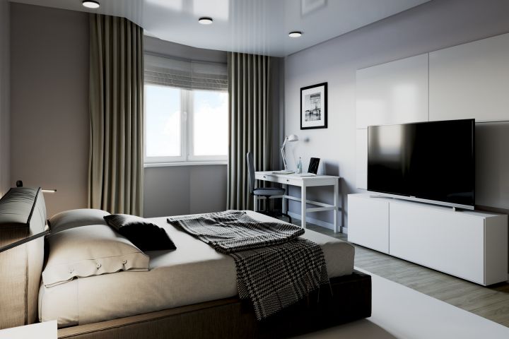 Визуализация спальни по дизайн-проекту. Работа была выполнена за 8 часов по цене 500 р. за кв. м