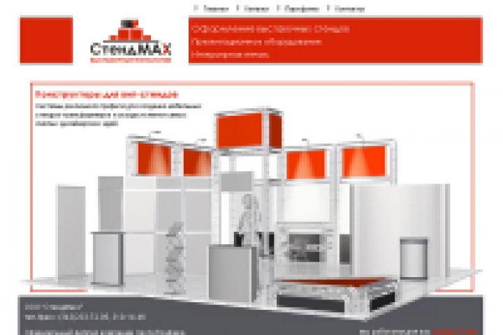 Сайт для компании, специализирующейся на продаже выставочных стендов. На главной - динамичная картинка (реализовано на javascript), 3D-визуализация. Дизайн, графика, верстка, наполнение