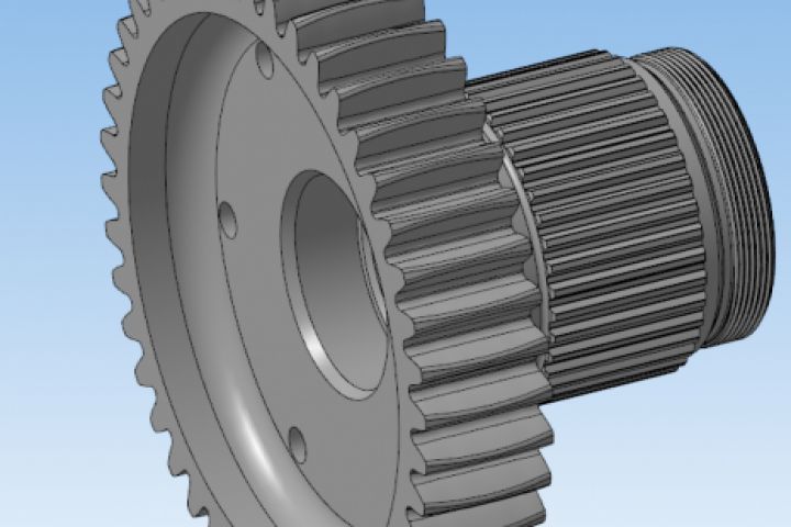 Модель изготовлена в пару с моделью обоймы по заказу для изготовления на ЧПУ. Выполнен расчет геометрии передачи. Пара успешно изготовлена и работает в узле Заказчика.
