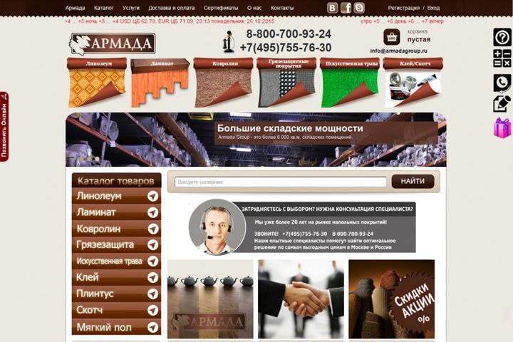 Создание разработка сайта продажи линолеума на 1С-Битрикс + интеграция с 1С