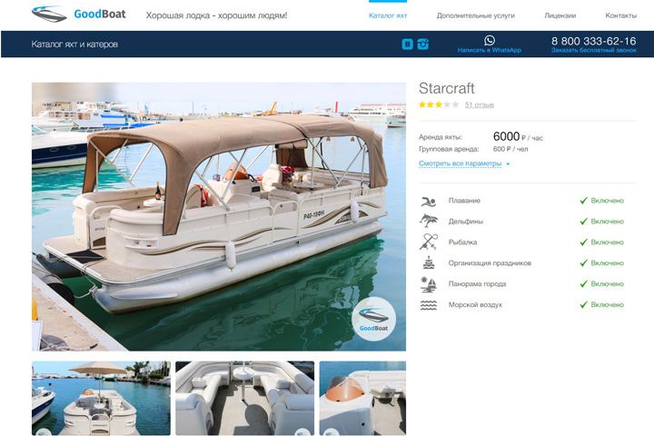 Разработка сайта прокат Яхт