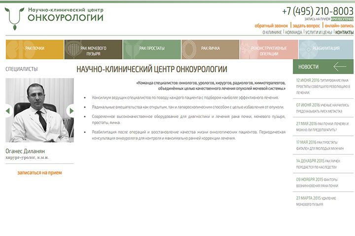 Разработка медицинского сайта onkourolog.ru Верстка, Программирование