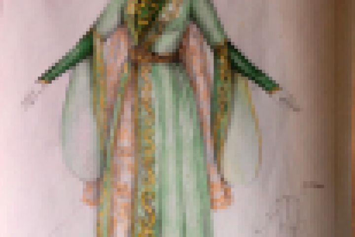 Эскиз сценического платья, чеченский женский костюм, рисунок от