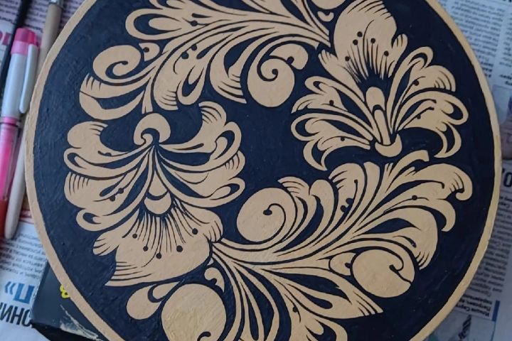 Роспись деревянного панно в стиле Золотой Хохломы.
