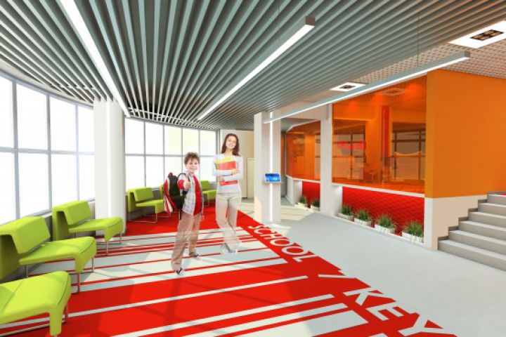 Дизайн-проект интерьеров школы «7 ключей» при Русско-Британском институте управления. Цель данного проекта состояла в том, чтобы создать в городе Челябинск принципиально новый учебный комплекс, дающий высокий уровень образования и необходимые современные условия времяпровождения