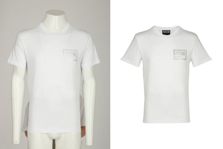 Требовалось сделать обтравку и ретушь фото одежды для интернет-магазина. Произведена обтравка, цветокорекция, кадрирование, детальная ретушь дефектов на одежде и создание симметричности для более продающего вида. Также необходимо было восстановить недостающую деталь (задник с биркой)