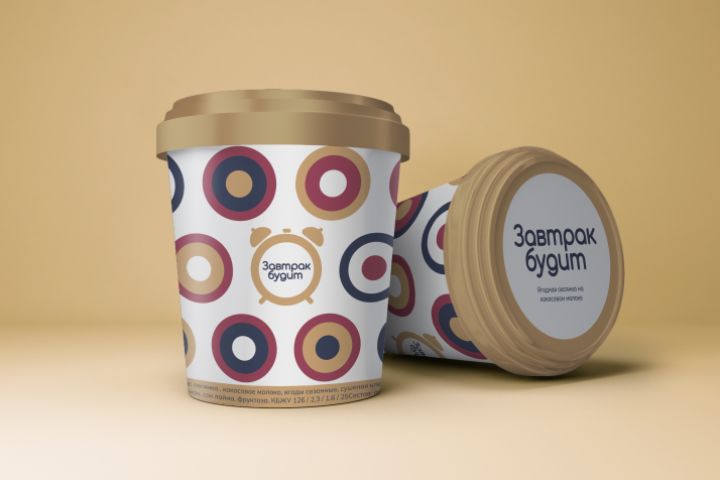 Завтрак будит - это проект, в котором создаются полезные блюда по авторским рецептам и реализуются через кофейни города. Этот проект создан для того. чтобы поменять представление людей о завтраке, сделать его веселым и бодрящим. Для этого проекта был создан фирменный стиль и его элементы, а так же упаковка каш. Чтобы было легче различать содержимое, патер имеет 3 цвета, отображающих крупу и дополнения.