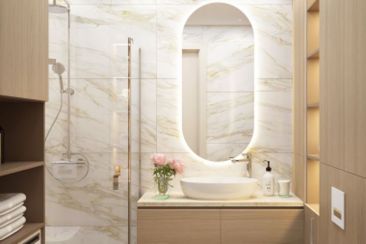 Современная ванная комната с душем в светлых тонах