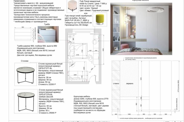 Спецификация мебели на примере одной комнаты