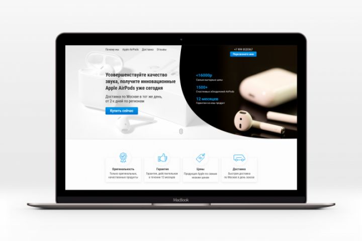 Разработка дизайна продающей странички для магазина Apple AirPods Стилистика - Apple
