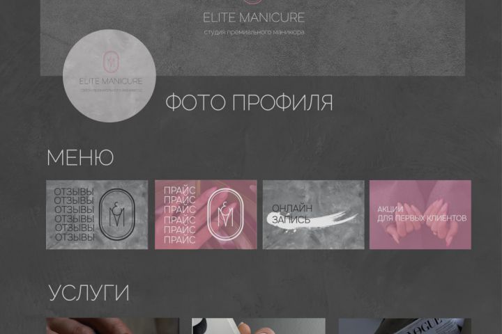 Оформление ВК для студии маникюра и кондитера