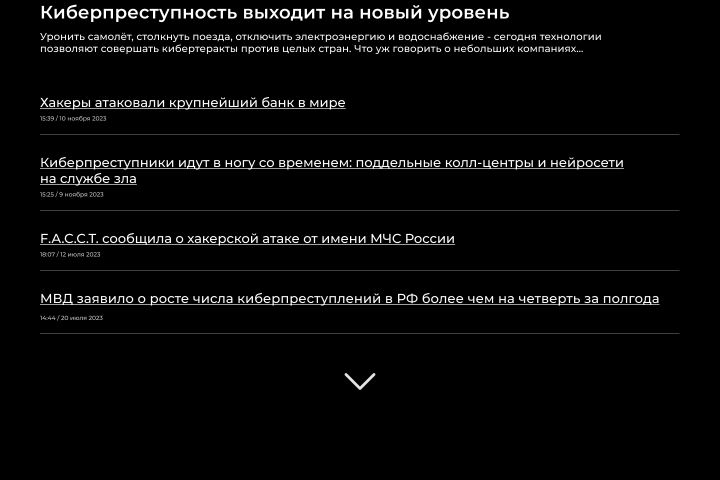Оформление главной страницы сайта компании, предоставляющей услуги компьютерной безопасности (тёмная тема)