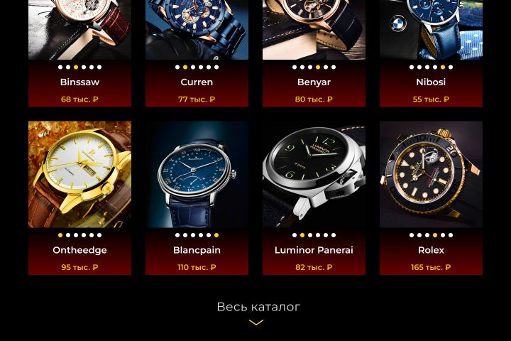 Оформление главной страницы сайта для интернет-магазина наручных часов