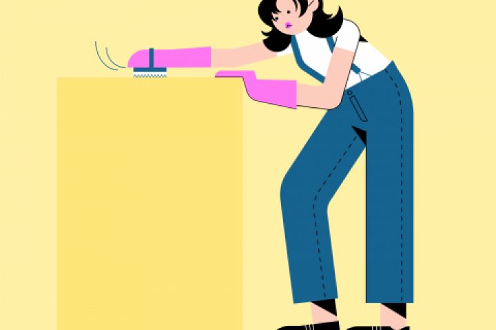 Характерная черта Моники- любовь к уборке и чистоте, что изображено на данной иллюстрации