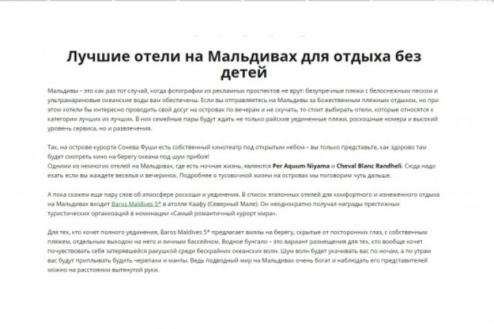 Как нельзя лучше идиллическую природную картину дополняют роскошные отели, большинство из которых ориентировано на уединенный отдых. Господствующая на Мальдивах туристическая концепция островов-курортов, организованная по принципу «Один остров – один отель», накладывает особый отпечаток на выбор места проживания – он должен идеально соответствовать вашим представлениям. Чтобы помочь организовать путешествие мечты, представляем вашему вниманию рейтинг отелей для семейных пар на Мальдивах, охватывающий самые лучшие варианты с особенным колоритом.