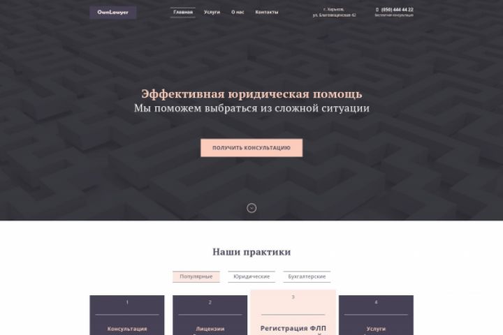 Главный акцент сделан на услугах, которые предоставляет компания.
