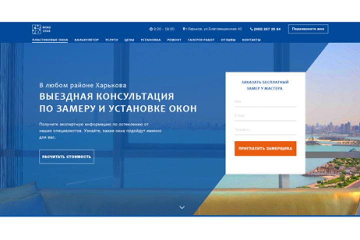 Разработан первый экран для компании по продаже пластиковых окон.