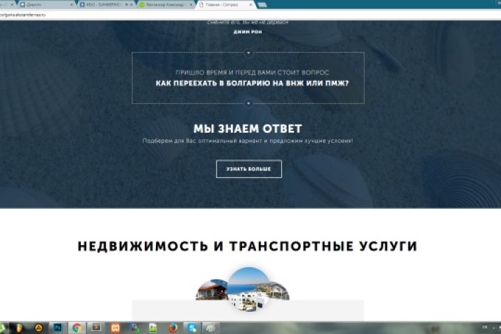Тренировочная работа. Сайт для компании по переезду в Болгарию. Сайт на системе управления MODx Revolution, встроенный слайдер, форма отправки данных, переход между страницами сайта.