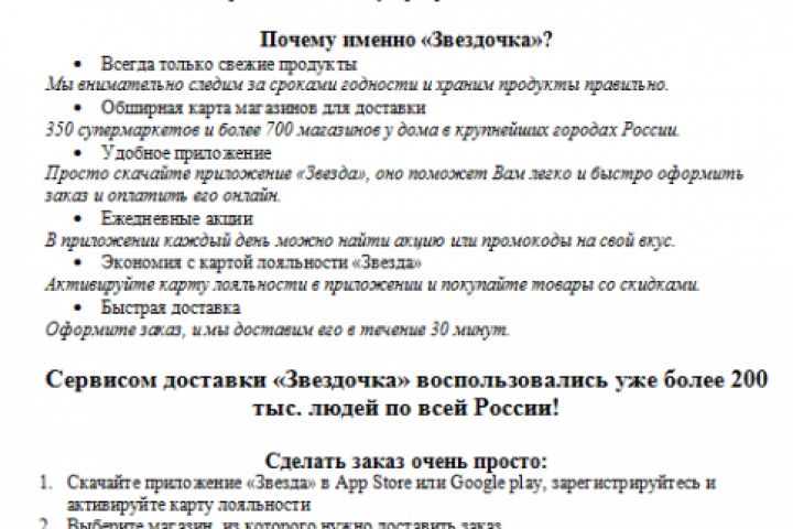 Текст для рекламы службы доставки продуктов