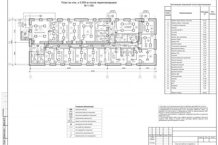 План внутренних сетей электроосвещения. Расчет освещенности выполнен в Dialux.