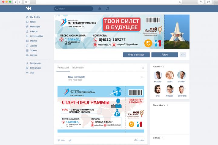 оформление группы "ТЫ-ПРЕДПРИНИМАТЕЛЬ"