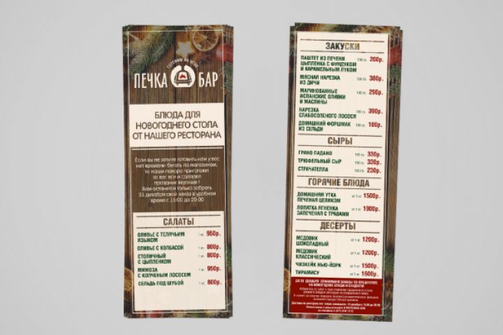 Разработка новогоднего меню для ресторана "Печка Бар"
