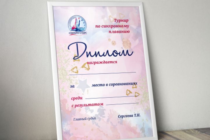 Диплом для клуба синхронного плавания