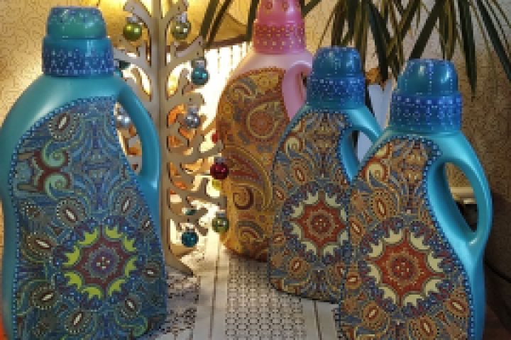 Есть в наличии на продажу ёмкости для полива цветов на 1 и 2 л. Очень удобно поливать цветы из таких бутылей и приятнее, чем из обычной непривлекательной. Такой бутылке и глаз радуется и руки тянутся сами к ней. Я использую такие бутылки дома как под полив цветов, так и под самодельные гели для стирки и мойки. Есть ёмкости и с графическим рисунком. Можно сделать любой рисунок под заказ и даже фотографию. Представленные ёмкости выполнены в технике декупаж и точечной росписи.