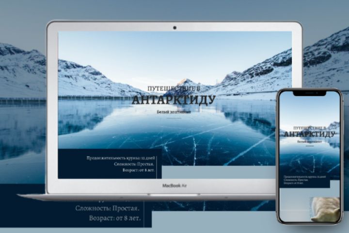 Целью проекта являлось: Разработать эффективный сайт для привлечения как можно большего количества людей на круиз в Антарктиду. А так же сделать не загруженный сайт и добавить как можно больше воздуха. Передать атмосферу волшебной Антарктиды и воодушевить людей на незабываемое путешествие.