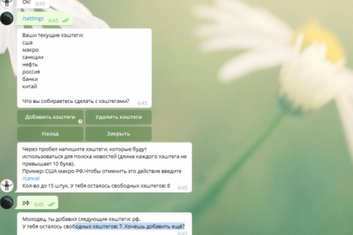 2. можно добавлять до 30 тикеров и 5 хэштегов