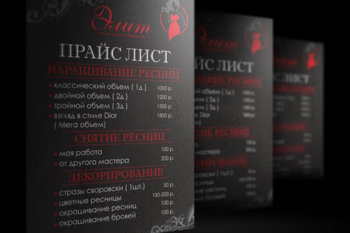 прайс-лист салона Элит