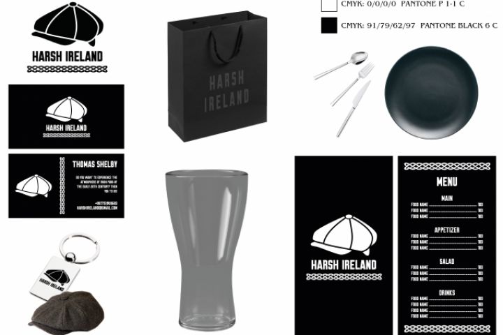 Разработанный фирменный стиль для ирландского паба "Harsh Ireland"