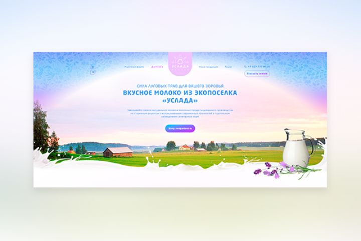 Разработан дизайн Landing Page для компании «Услада», занимающейся производством и реализацией домашних молочных продуктов и деревенского молока.