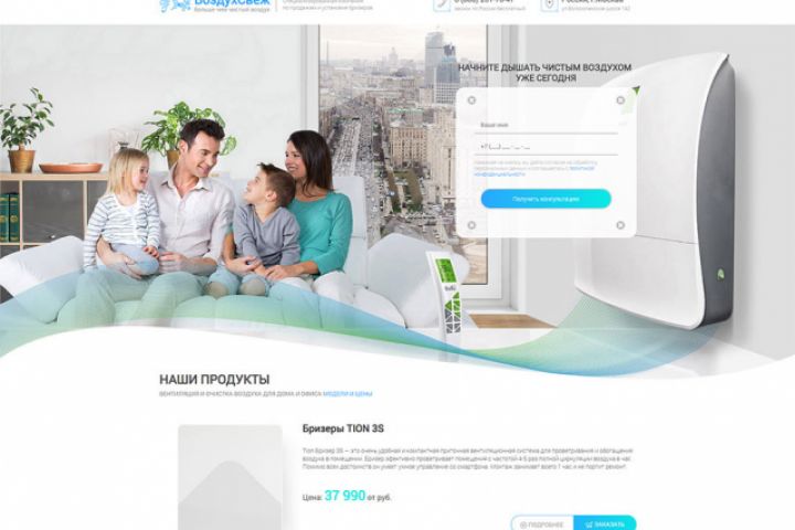 Корпоративный сайт для компании "ВоздухСвеж", которые занимаются продажами "Бизеров" - вентиляционных систем.