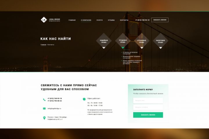 Страница контактов сайта юридических услуг Legal Bridge