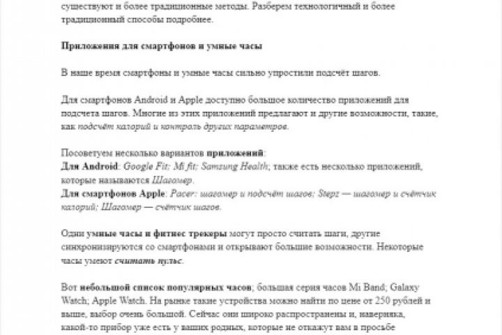 Для смартфонов Android и Apple доступно большое количество приложений для подсчета шагов. Многие из этих приложений предлагают и другие возможности, такие, как подсчёт калорий и контроль других параметров.