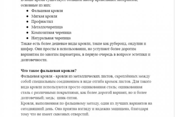Фальцевая кровля - кровля из металлических листов, скреплённых между собой специальным соединением в виде отгиба кромок листов. Для такого вида кровли используются просто оцинкованная сталь; оцинкованная сталь с различными покрытиями, как более дорогой вариант, но и более долговечный; медь; цинк-титан.
