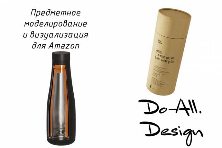 Моделирование и визуализация бутылки для продажи на сайте немецкого Amazon, а также размещения на других маркетпейсах Германии.