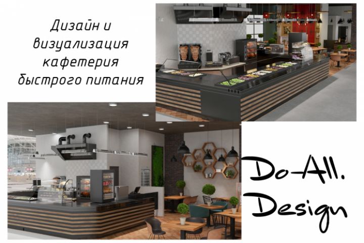 Разработка интерьера по пожеланиям клиента. Моделирование и визуализация кафетерия в торговом центре.
